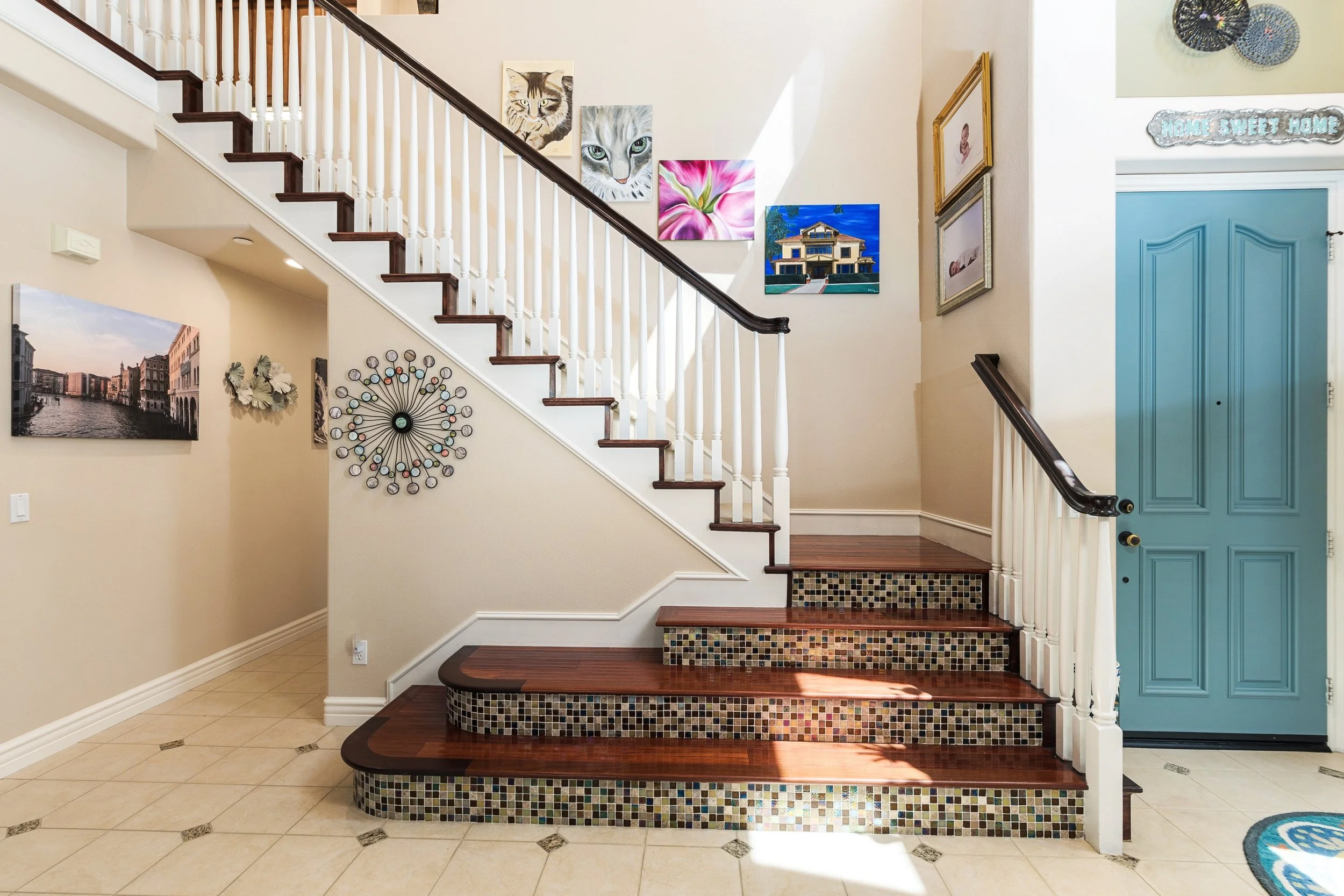 4S Ranch Transitional Staircase with Mosaic Tile and Wood
