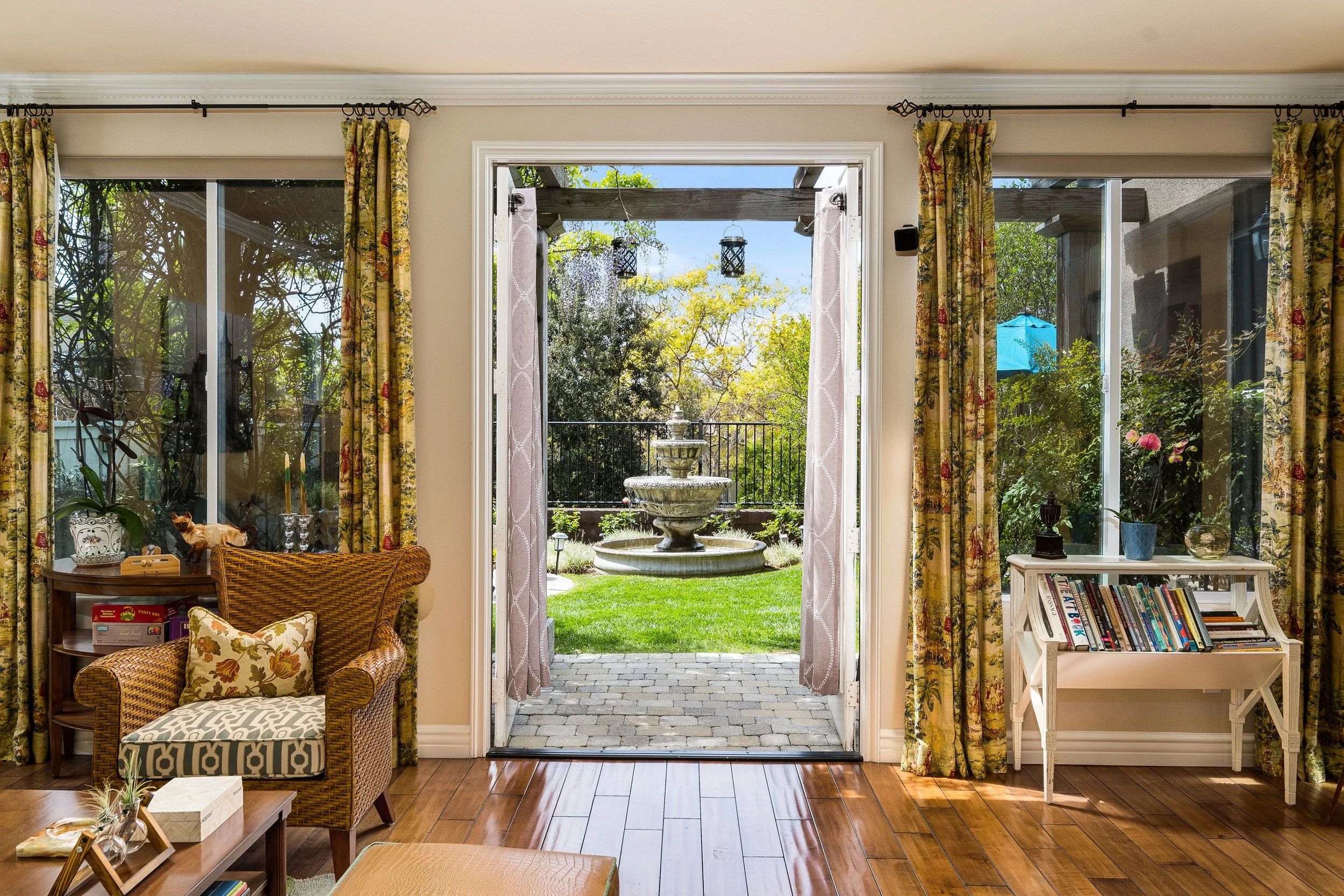 4S Ranch Transitional Living Room with Custom Window Treatments